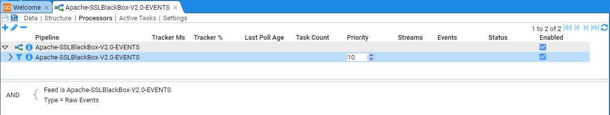 We now want to add a Processor for the Apache-SSLBlackBox-V2.0-EVENTS pipeline.