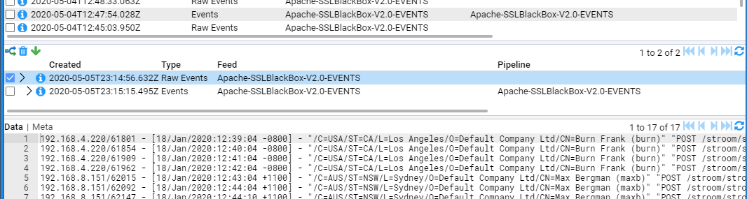 The pipeline for this Event feed is called APACHE-SSLBlack-Box-V2.0-EVENTS.