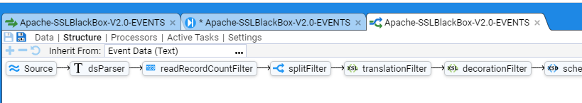 Save these pipeline changes by pressing the icon in the top left then switch back to the APACHE-SSLBlackBox-V2.0-EVENTS stepping tab.