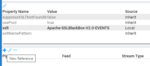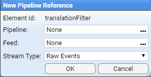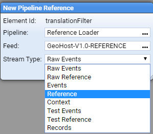 So, to associate our GeoHost-V1.0-REFERENCE reference feed with this translation filter, click on the New Reference icon to bring up the New Pipeline Reference selection window