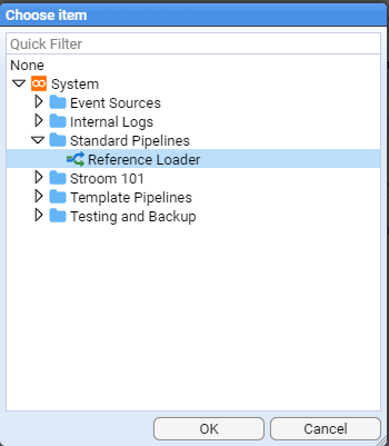 For Pipeline: use the menu selector and choose the Reference Loader pipeline and then press OK