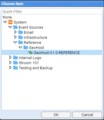 For Feed:, navigate to the reference feed we want, that is the GeoHost-V1.0-REFERENCE reference feed and press OK