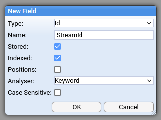 | Name | Type | Store | Index | Positions | Analyser | Case Sensitive |